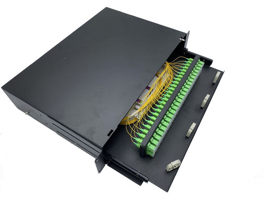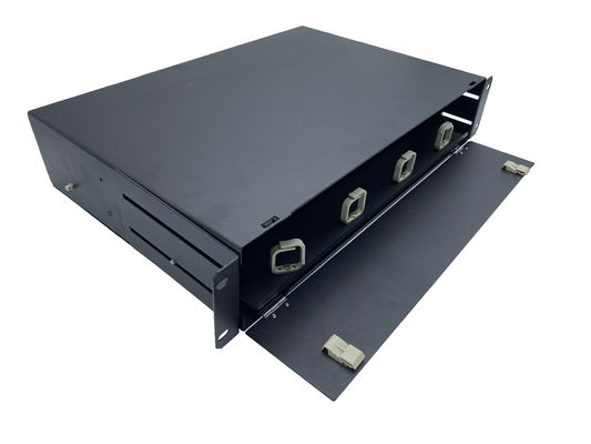 48 ท่าเรือ SC19รางวัลสีดําโลหะ Slide Drawer สายไฟเบอร์ออปติก แพทช์แพนล์ Rack Mount ODF480mm