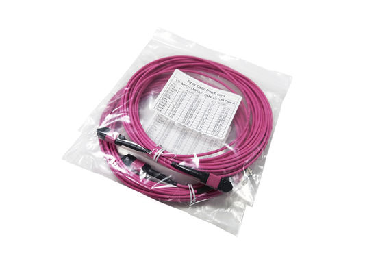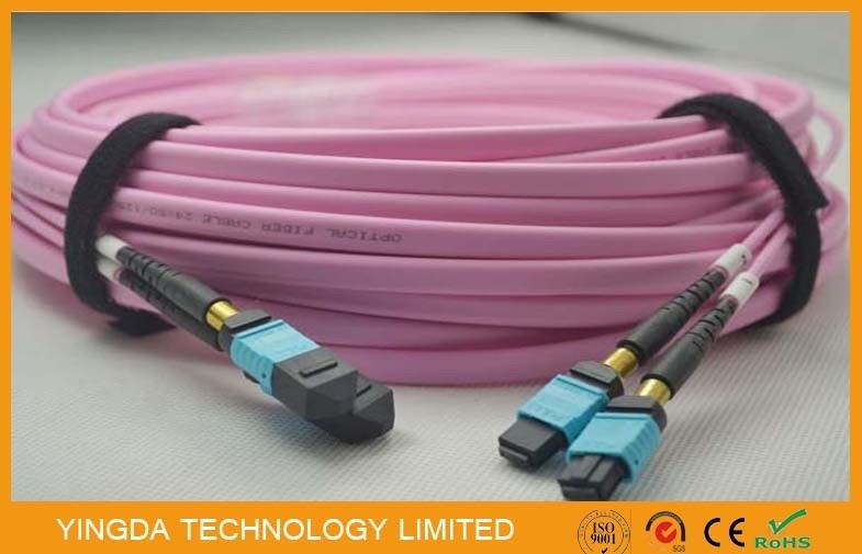 24 สายใย Mpo Mtp แพทช์เคเบิล, คาเบลศูนย์ข้อมูล Mpo Connector Om4 Flat Cable